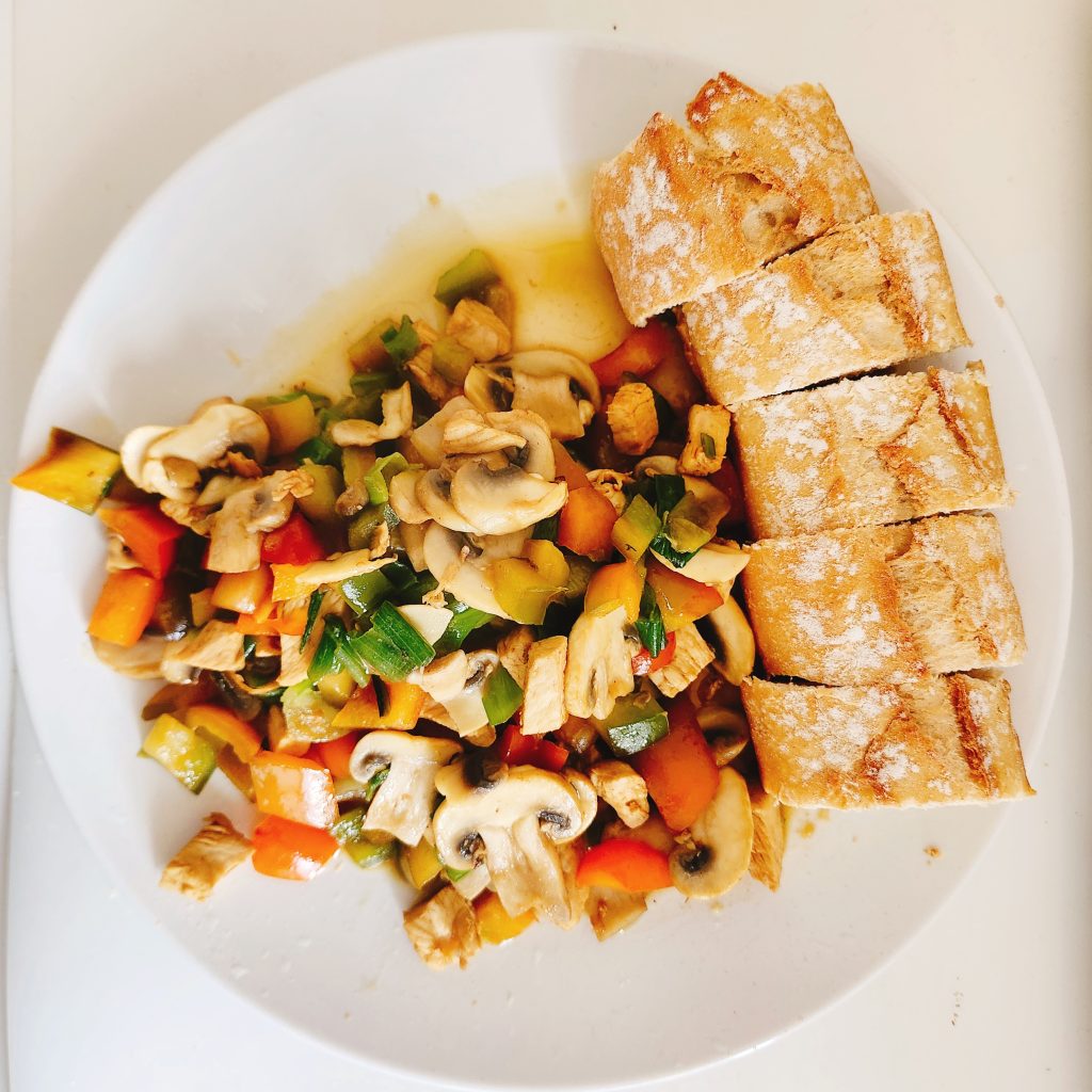 再后来我发现,这里的居民会把它沾着汤汁吃,一下子就软了很多,我就发明了中西结合的餐食,中式炒菜配法棍面包,没有违和感。
